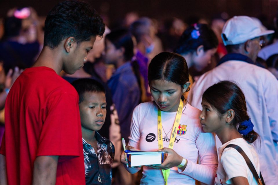 Para celebrar su amor, el equipo de adoración de United Siem Reap dirigió a la multitud en cánticos de alabanza, lo que provocó que el público entusiasmado saltara y bailara al ritmo de la música. Los jóvenes acudieron en masa al festival y, en un país donde el 60 % de la población tiene menos de 30 años, muchos miran hacia el futuro y se hacen muchas preguntas acerca del valor de sus vidas.